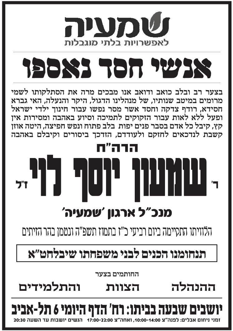 מבכים את הסתלקותו לשמי מרומים של מנהלינו הדגול